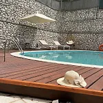 Det finns mathörna, tillsammans med vattenkokare, kylskåp och ugn. Här finns en pool, soldäck, utomhuspool och terrass.